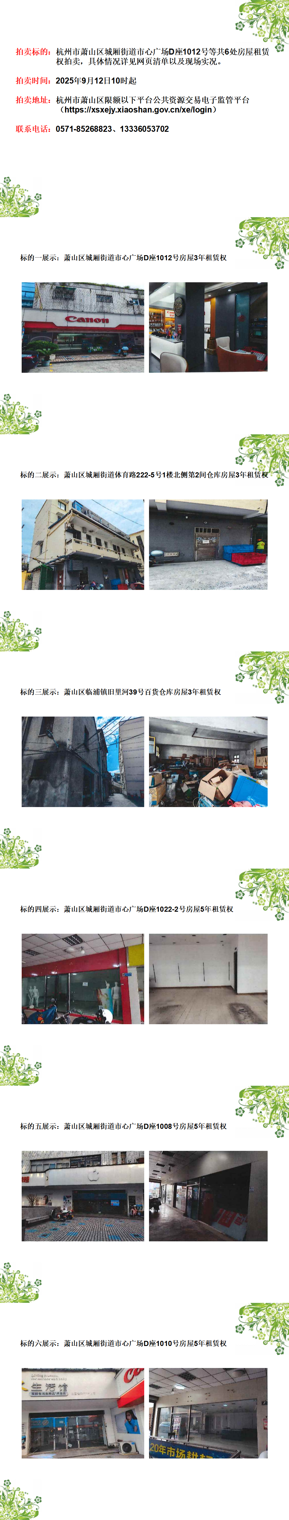 蕭山城廂街道市心廣場D座1012號等共6處房屋租賃權